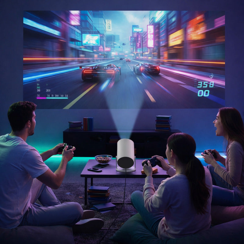 Yes! Connect your PlayStation, Xbox, Nintendo Switch, or PC via HDMI and game on a massive 130-inch screen. The ST400 PRO+ is perfect for casual gaming with friends—Mario Kart, FIFA, story-driven games, split-screen sessions.